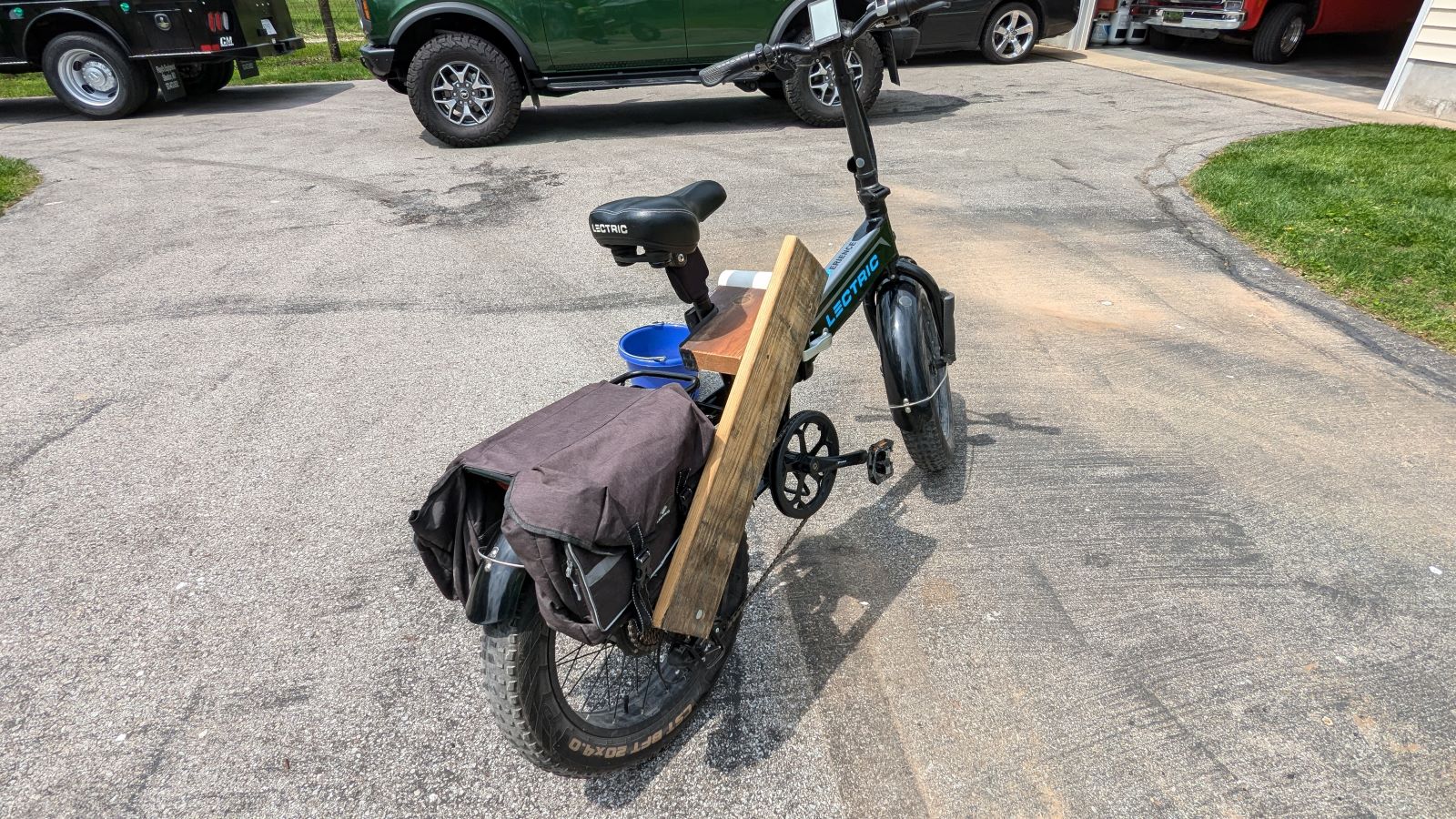Each bike requires two different brackets: A large one that the bike rests on when folded and laying on its side, and a small one that fits between the two halves when folded to keep them from banging together too much in transit. For each, we will let the photos do most of the talking, and just give a very basic description. If you have additional questions, feel free to leave them in the comments or email us at alaskanramtraveladventures@gmail.com