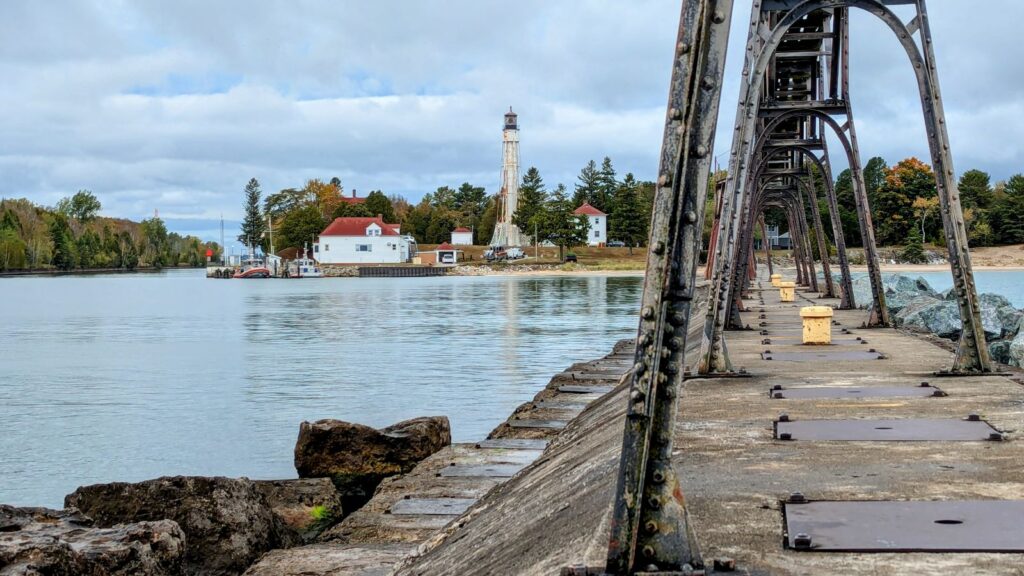 The Sturgeon Bay Canal Lighthouses weren’t new to us, but it had been a very long time since we had visited them, so it almost felt like a new adventure! We loved walking out the pier toward the front lighthouse and while you can’t get right up to it, you can get pretty close – and it feels like more of an adventure than it actually is, since the walk takes you away from shore a bit. The rear light is on the Coast Guard base, so we weren’t able to walk right up to it, either, but we were plenty close enough to get some good photos, and the view of it from the end of the pier is pretty great, as well. On our way back to town from visiting these two lighthouses, we also stopped at one of the canal overlooks. From here we were able to get some great views of the Sturgeon Bay ship canal that opened in 1881, giving ships a safe passage from Lake Michigan to Sturgeon Bay and then on to Green Bay. This canal not only allows for time savings for the ships since they don’t have to navigate all the way around the peninsula, but it also allows passage while avoiding the treacherous stretch of water – known as Death’s Door – at the end of the peninsula.