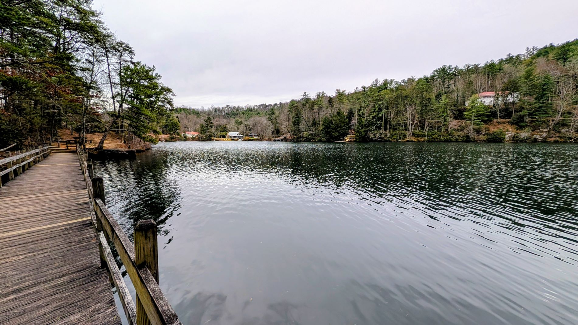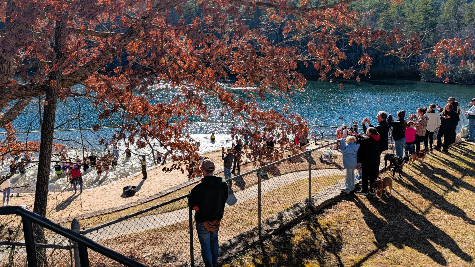As if that wasn’t enough, we also took the short walk down to the beach area on Tallulah Lake. The beach is currently closed for the season, but we couldn’t miss watching the park’s planned Polar Bear Plunge there on New Year’s Day. Unfortunately, we weren’t able to get very close to watch, and had to do so through the tree branches, but even from a distance it was obvious that all the participants were having a great – although chilly – time! In our group, we all teased one another and tried to egg each other on to participate, but there were no takers…