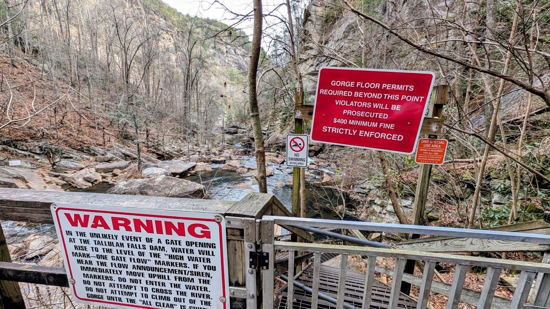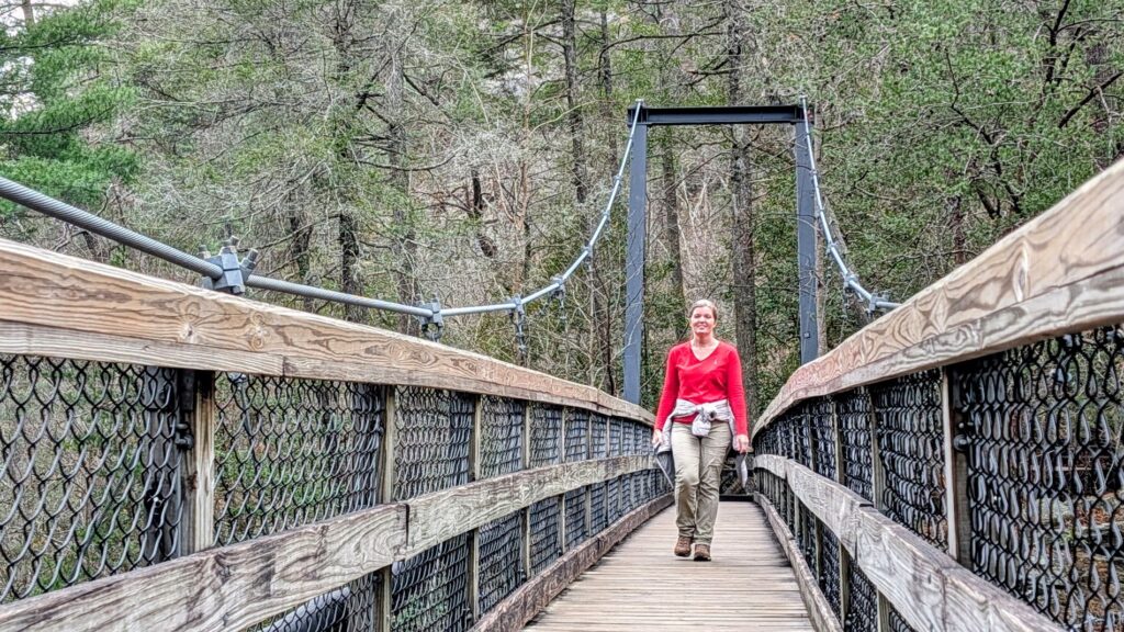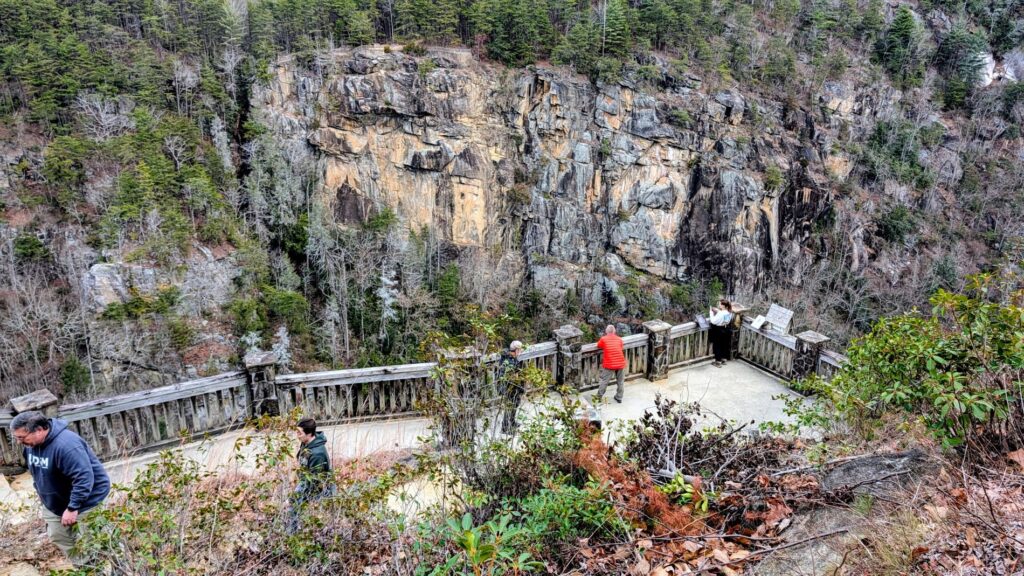 One thing to note about Tallulah Gorge…if you want to hike to the floor of the gorge, you must have a permit to do so. Only 100 permits are issued per day and they are given out on a first come, first served basis at the Interpretive Center. We chose not to do any of the gorge floor hikes.