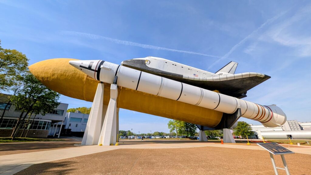 One of the big advantages of Monte Sano State Park is its proximity to Huntsville.  Being so close to town allowed us the opportunity to go out for dinner a couple of times, but also to explore the U.S. Space and Rocket Center.  If you have followed us long, you know we love a good museum, and this one was pretty great.  We spent almost seven hours at the facility learning about the progression of space exploration and seeing a planetarium show on the Webb telescope.  We also really enjoyed seeing the outdoor exhibits giving us a better idea of the scale of the various space vehicles.  It is one thing to see pictures of a Saturn V rocket, but standing next to a life-size model is a whole different experience!  At $39.00 per person, this experience didn’t come cheap, but for a full day of learning and exploration, we believe it was worth the cost!